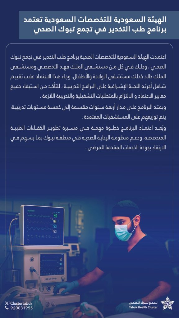 الهيئة السعودية للتخصصات السعودية تعتمد برنامج طب التخدير في تجمع تبوك الصحي
