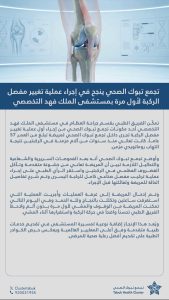نجح تجمع تبوك الصحي في إجراء أول عملية تغيير مفصل الركبة لمريضة في مستشفى الملك فهد التخصصي