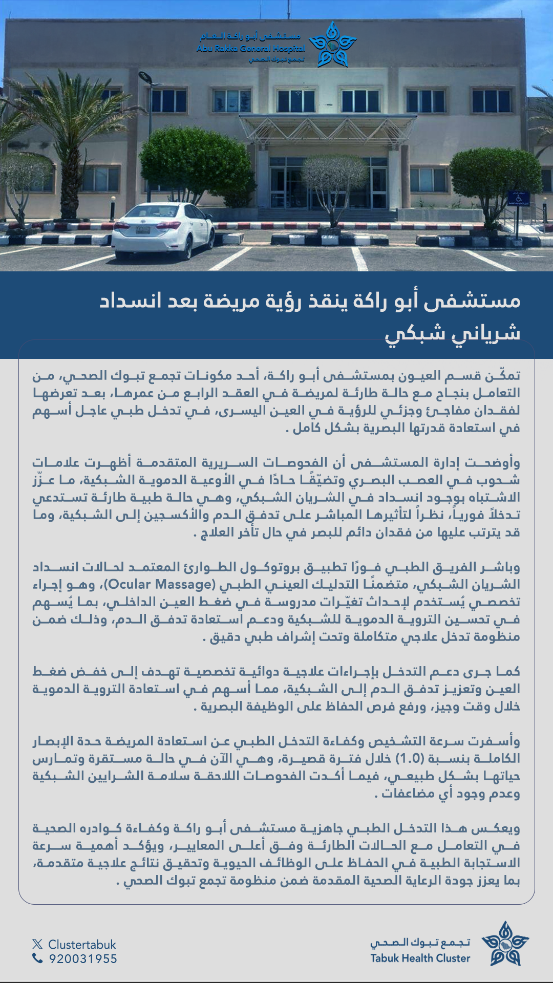 في كلمة الرئيس التنفيذي لتجمع تبوك الصحي انطلاقًا من القيم التي أرساها يوم التأسيس، يواصل تجمع تبوك الصحي مسيرته بعزمٍ وثبات فبراير 22, 2026 اقرأ المزيد »